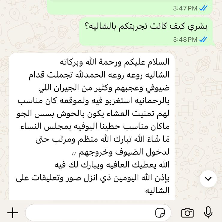 - في حال استئجار الشاليهين (شاليه 1 للرجال - شاليه 2 للنساء)