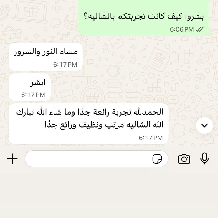 - لا يسمح بالتنسيق من خارج الشاليه.