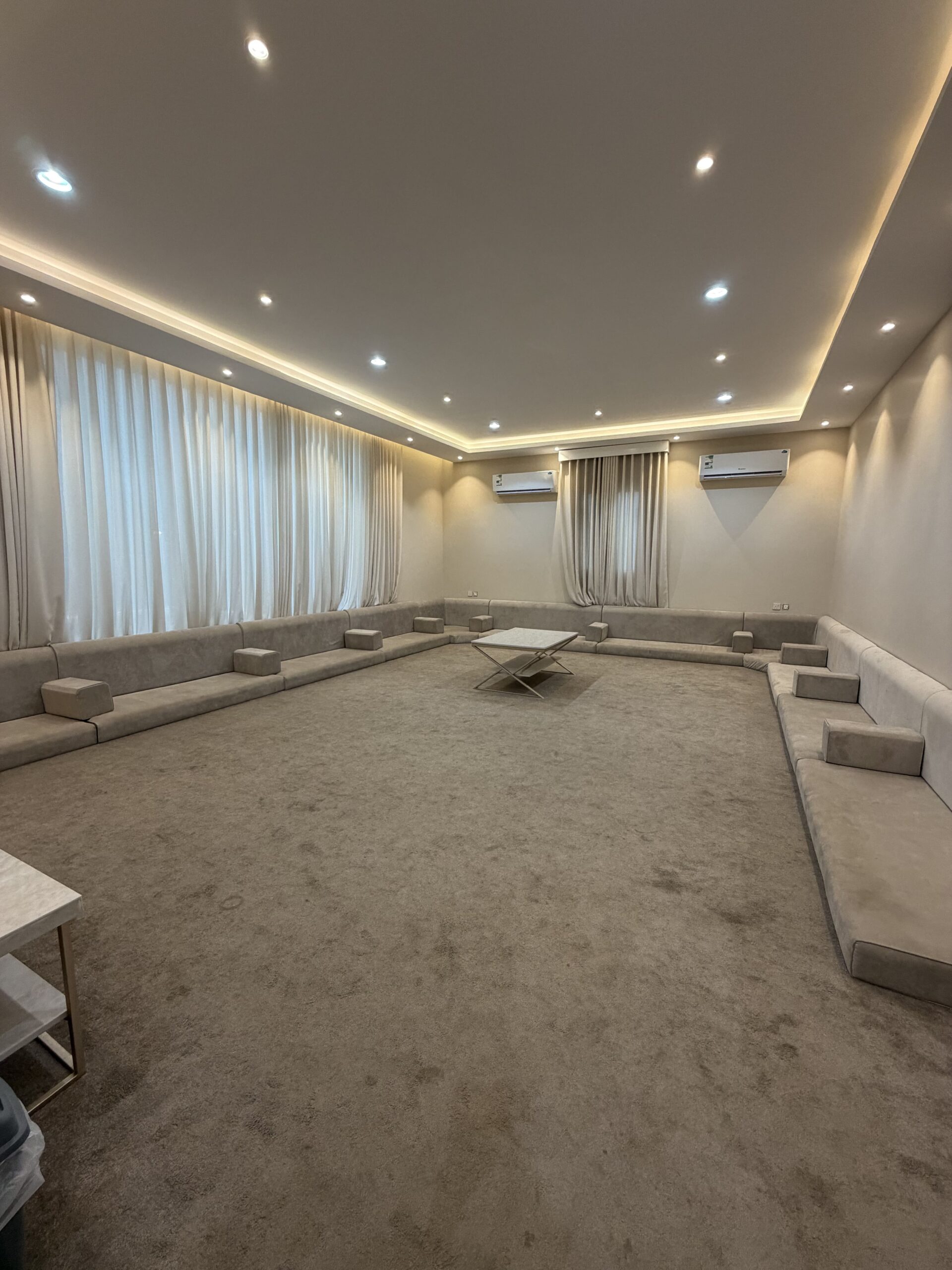 - مجلس جلسة عربية (8*6م) يتسع لـ 30 شخص - واجهات زجاجية مطله على الشاليه - TV