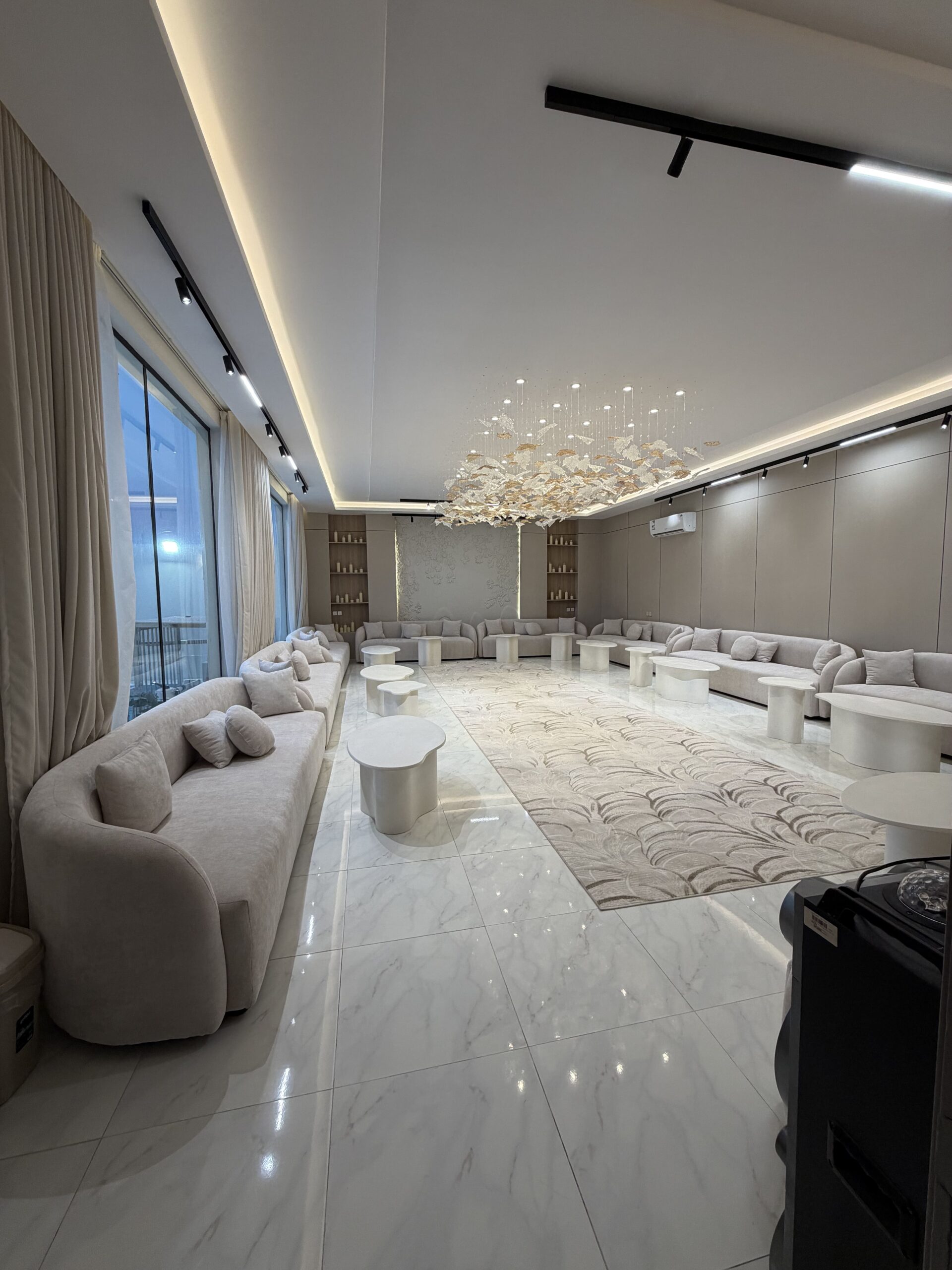 - مجلس رئيسي (12*7م) يتسع لـ 50 شخص - واجهات زجاجية مطله على الشاليه